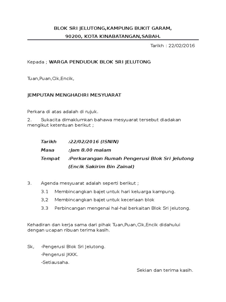 . Nyatakan nombor perhubungan atau e-mel. A Keselamatan Peserta dan harta-benda Keluasan kawasan yang mencukupi bagi semua peserta dalam kumpulan Pemimpin unit atau kumpulan berpengetahuan dalam mengatasi sesuatu. Isi kandungan surat jemputan.
